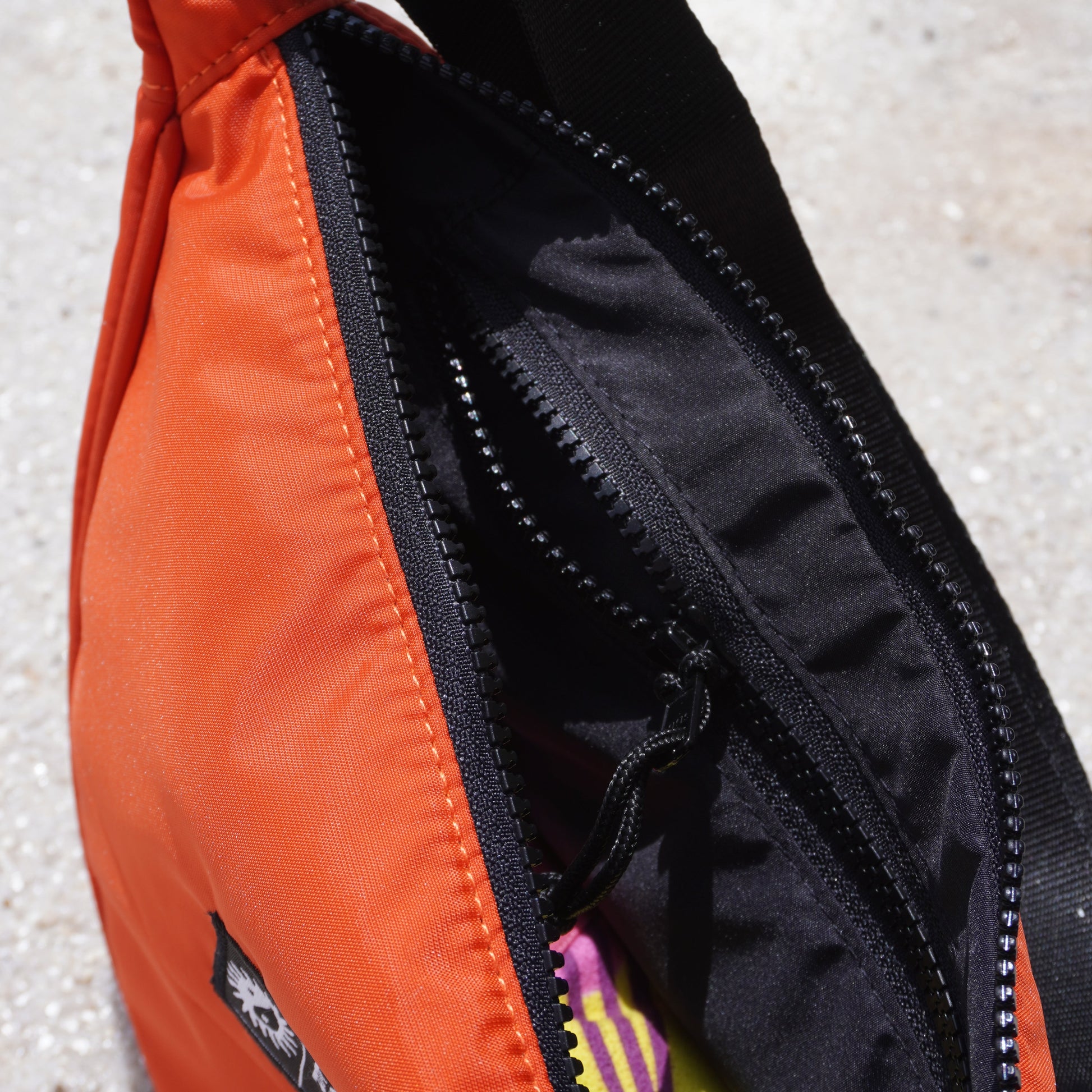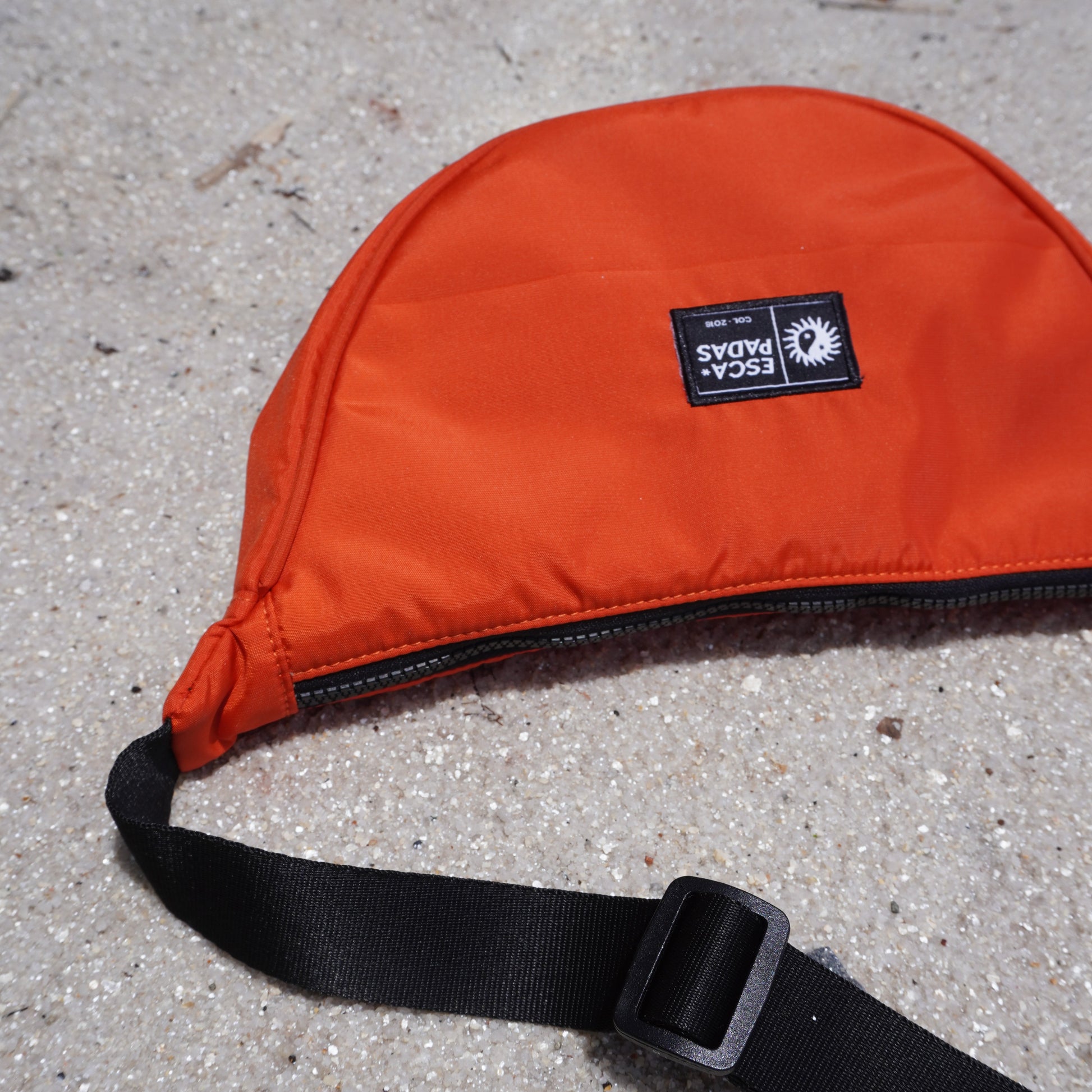 Bolso tipo banana acolchada fabricado en lona antifluido.