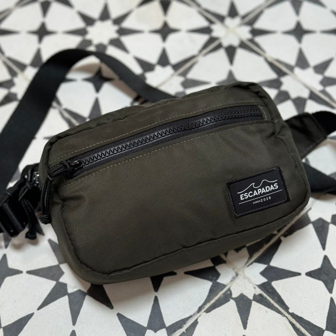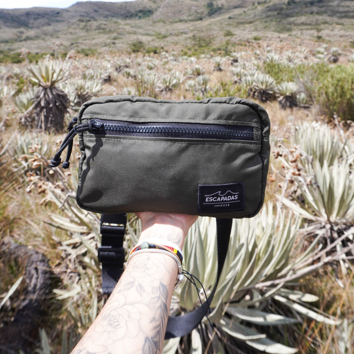 Canguro diseñado para que lleves a la mano todo lo que necesitas en tus escapadas como: celular, billetera, llaves, audífonos, cargador, pasaporte, etc.