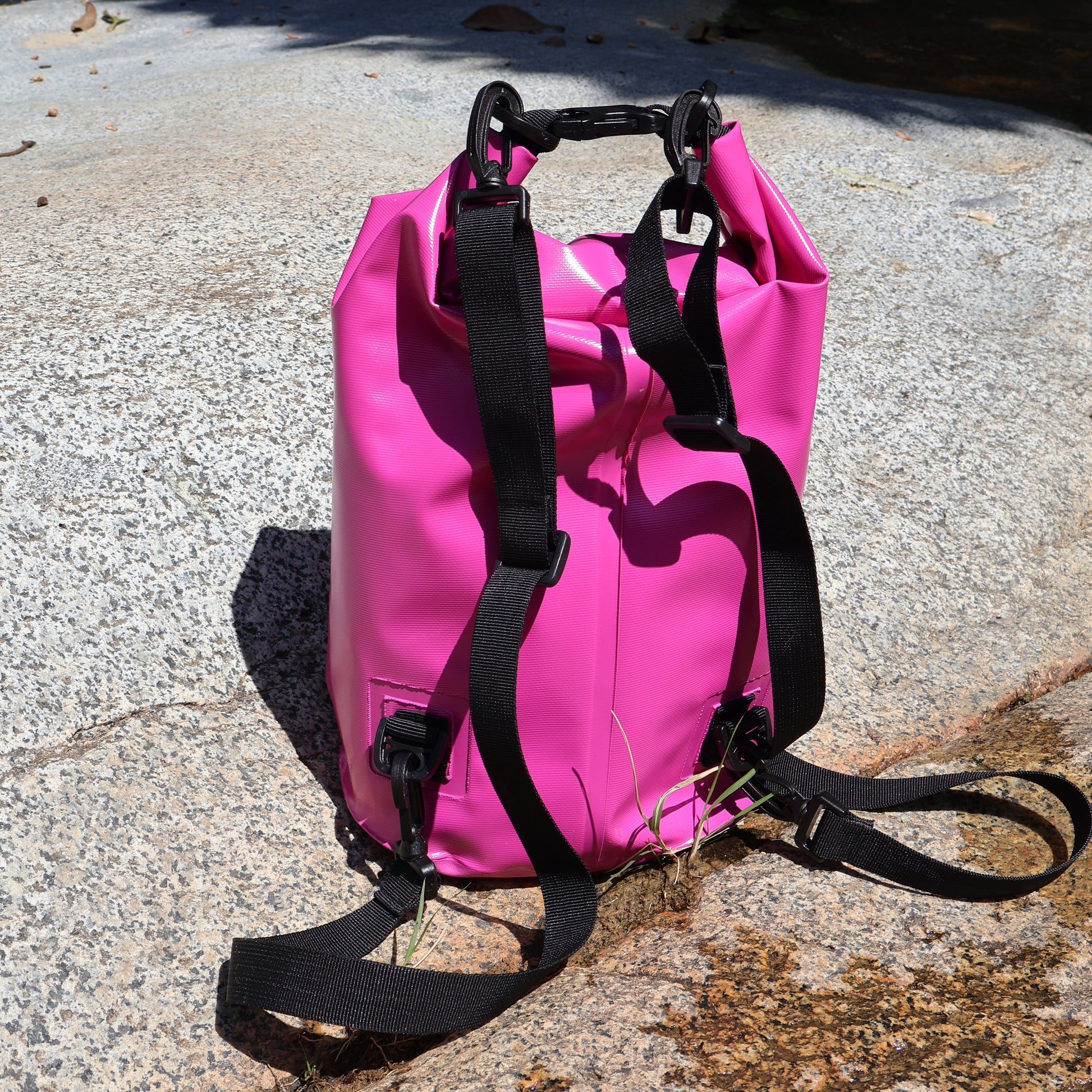 Drybag con capacidad 10 lts, con 2 cargaderas en reata para ser usado como manos libre o morral, sus costuras termoselladas hacen que sea totalmente impermeable y se limpie con facilidad.