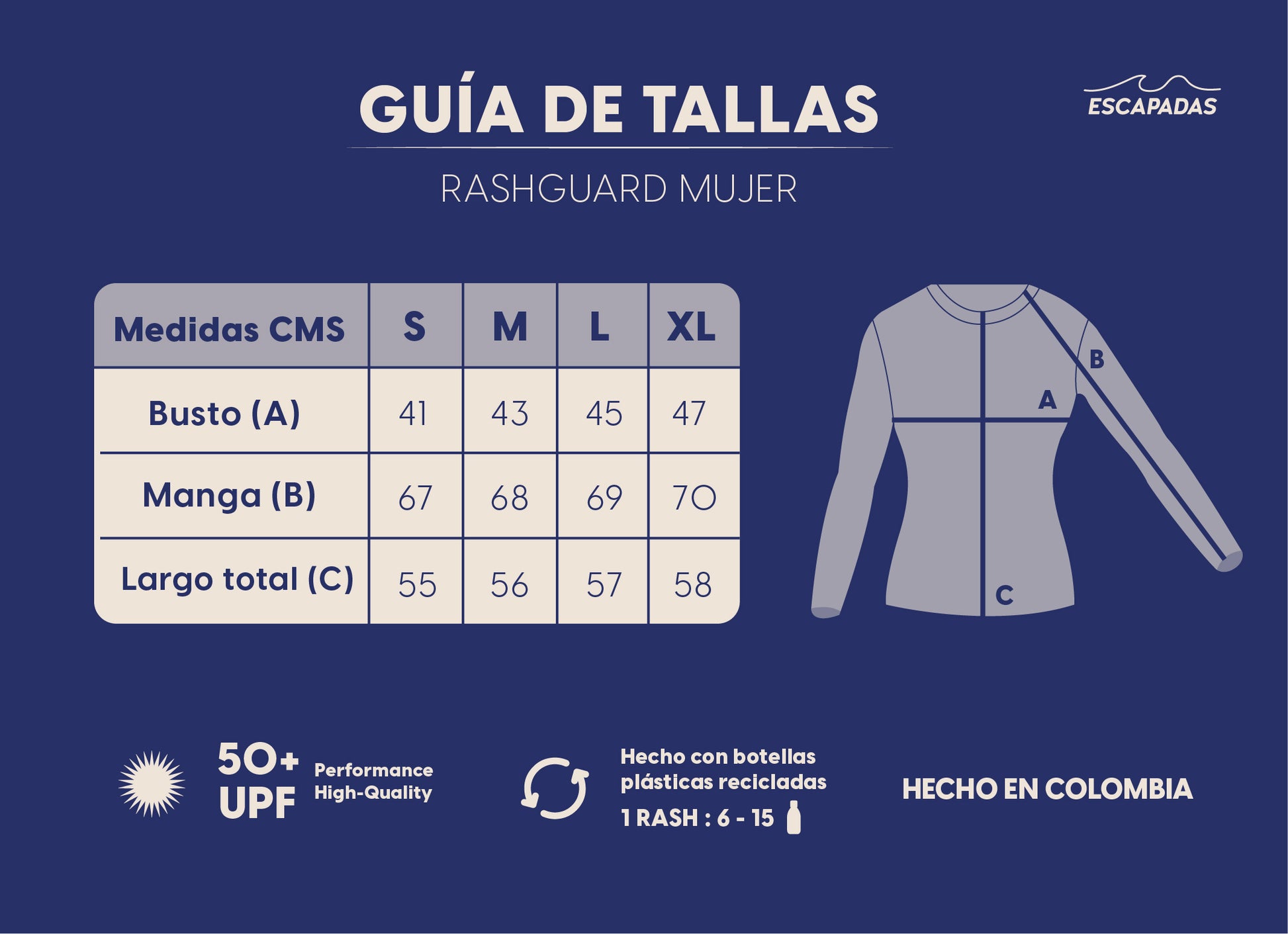 - Protección UV: protección solar UPF 50, así evitas utilizar bloqueadores solares que afectan la salud de los corales y la vida marina.